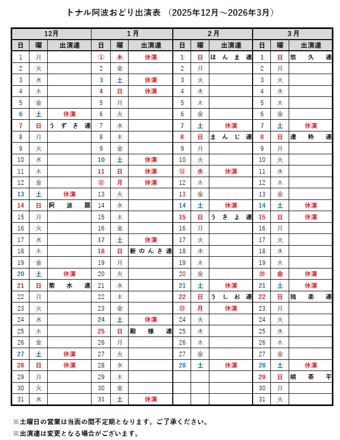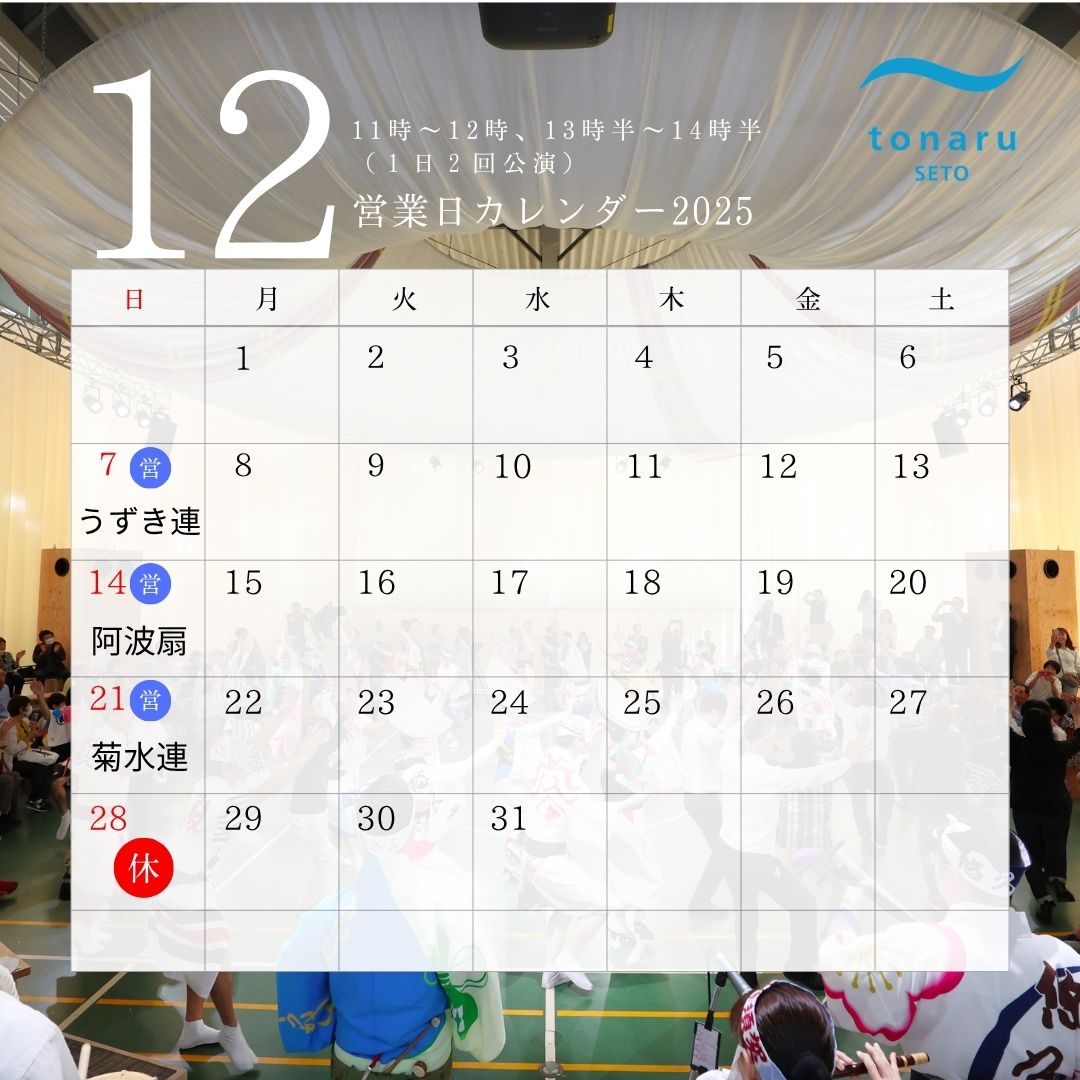 年末年始(12月28日(日)・1月1日(木祝)・4日(日)・11日(日)・12日(月祝))