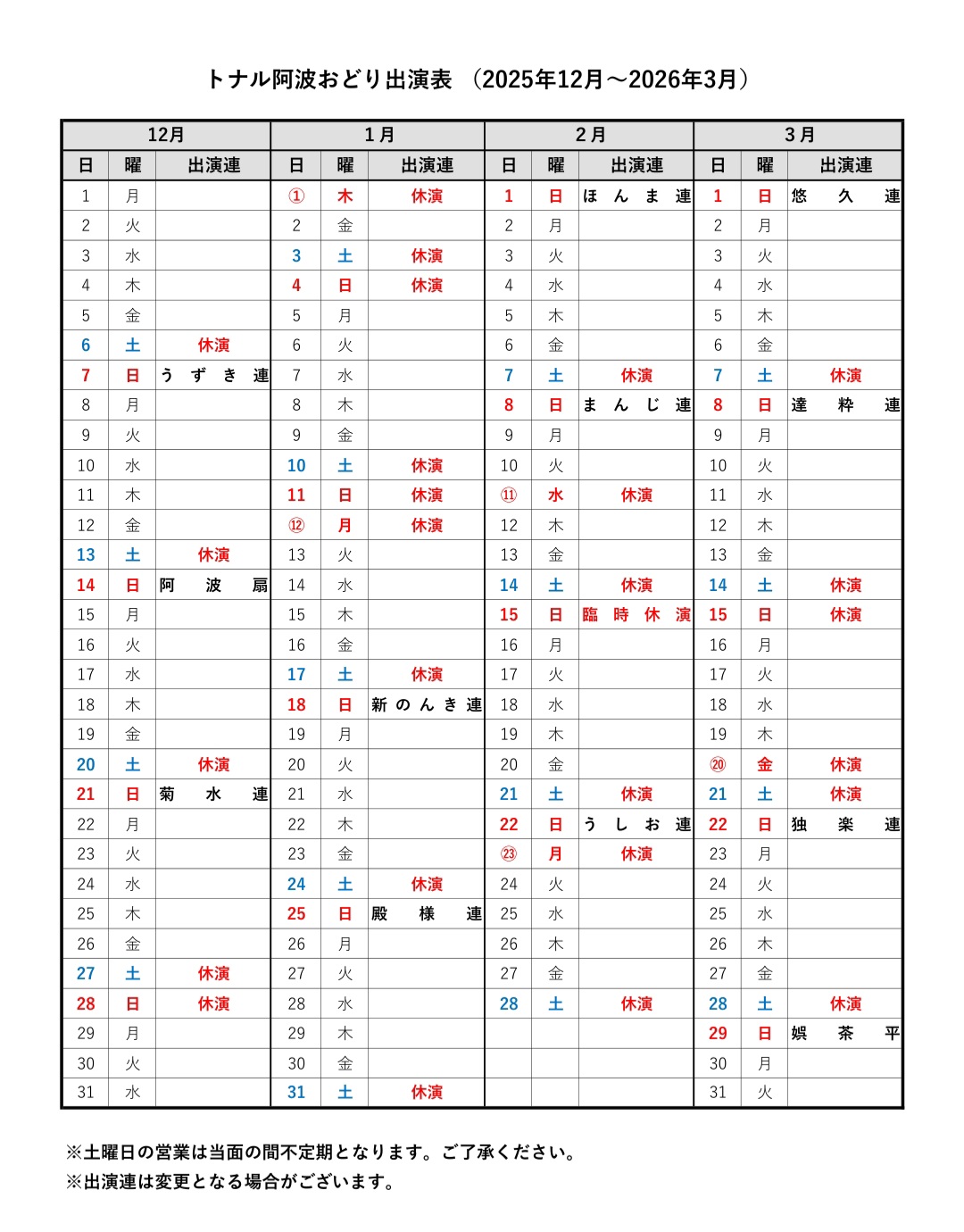 【出演予定表】※クリックで拡大