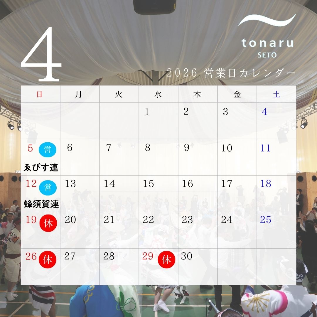 4月19日(日)、4月26日(日)、5月5日(火祝)、5月6日(水祝)